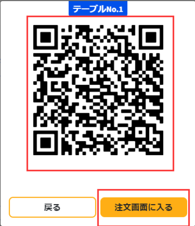 「QR表示」ではQRコードでお客様自身が注文画面に入って注文を行うことができます。