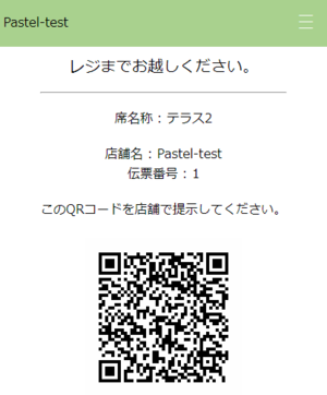 精算QRを設定していればお客様画面にQRコードが表示されます。